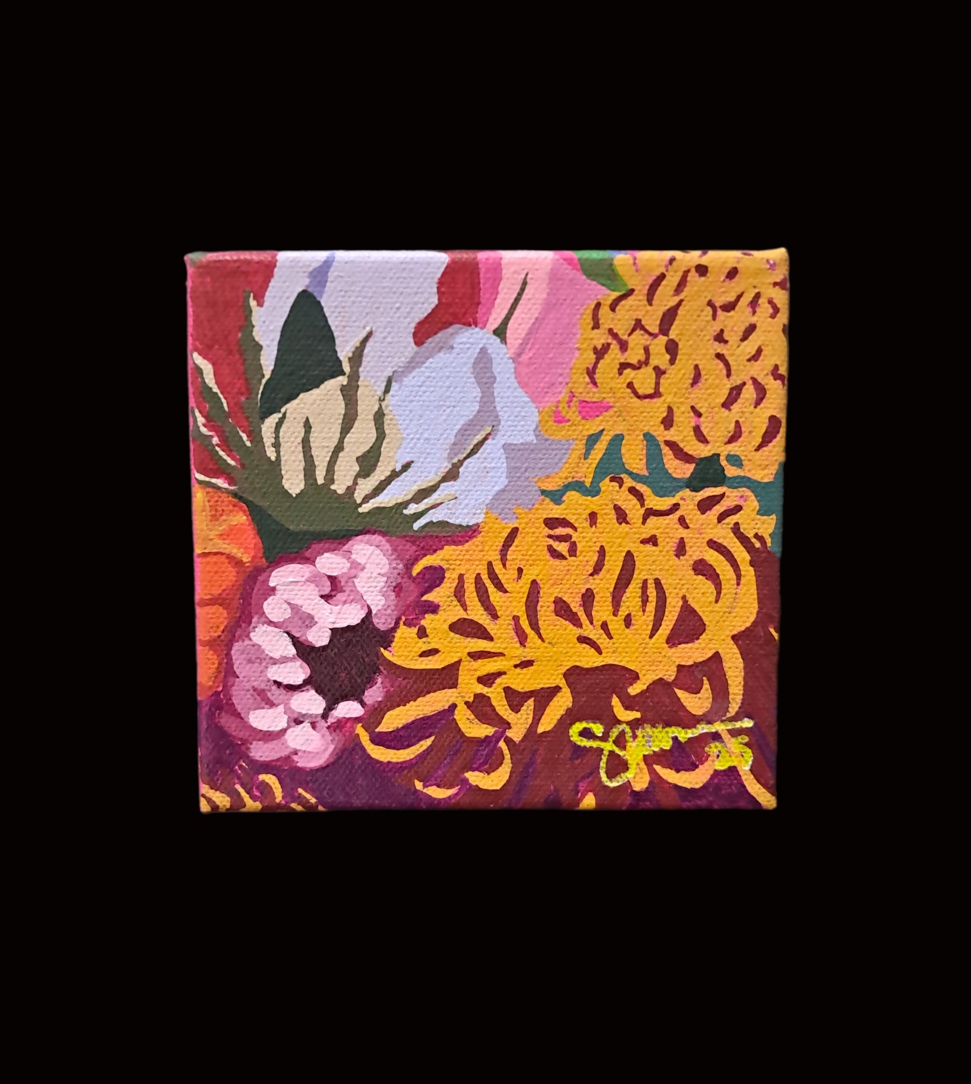 Pink Joy_Mini No.5 (DOUBLE YELLOW CHRYSANTHEMUMS);Sz 4"x4"