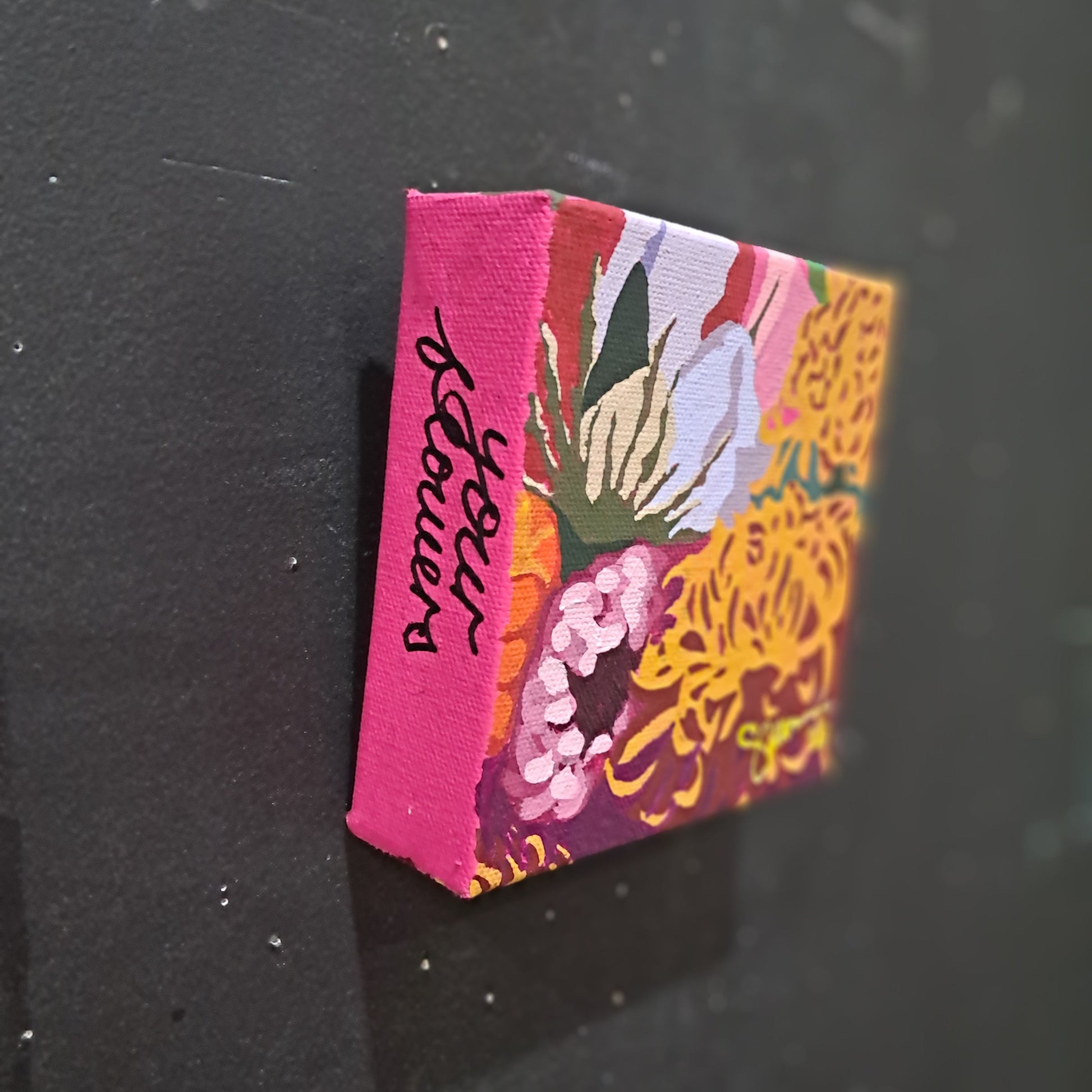 "Give Us Our Flowers" is a heartfelt tribute that honors the resilience and contributions of our predecessors, while also shedding light on the ongoing struggles and victories in our collective journey toward liberation. The inclusion of the Japanese chrysanthemum in the bouquet is particularly symbolic. Known for representing resilience, friendship, happiness, and well-being, the chrysanthemum's beauty and multi-layered nature embody hope and the potential for growth as it matures, reflecting the layers in our fight. This is followed by “These are your flowers in Pink Joy”, a joy celebration of here and now.